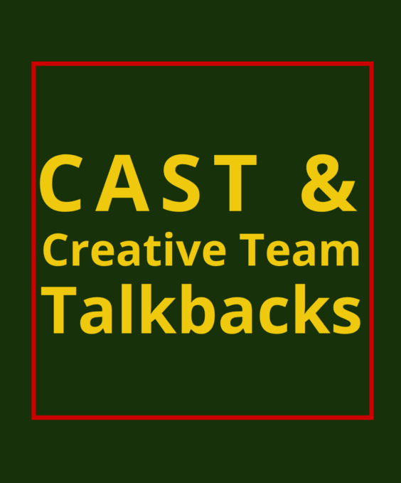 Stay after the show and get an insider’s point of view! This is an opportunity to ask questions, learn how creative decisions were made, and hear behind-the-scenes stories firsthand from members of the cast and creative team.